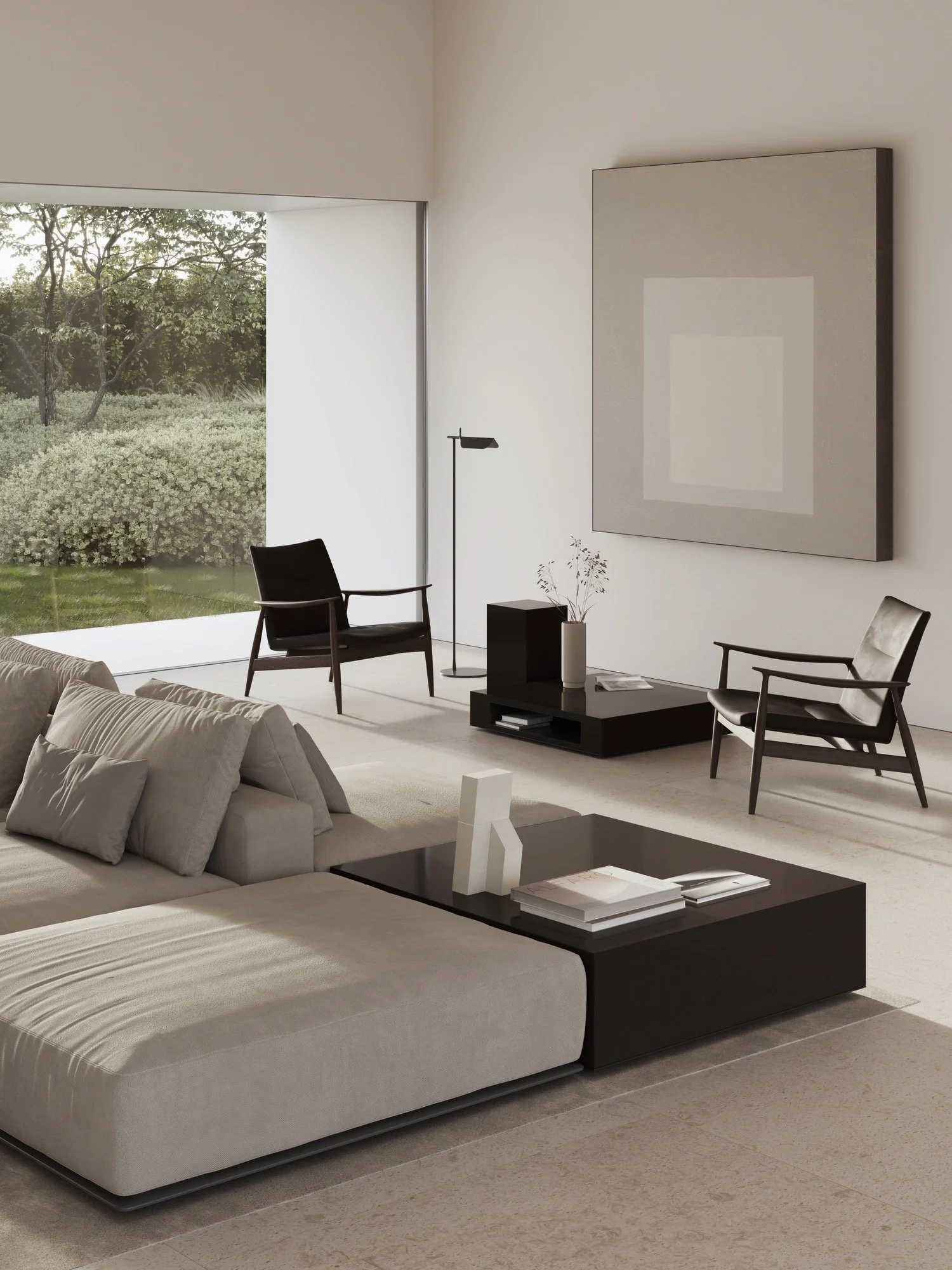Cada uno de los volúmenes se configura de acuerdo a la función que contiene, el primero para la zona más pública, otro para las zonas más privadas y el último para la zona de servicio. Las estancias interiores, que son cerradas solamente cuando es estríctamente necesario, se abren hacia las singulares vistas que transforman esta villa en un lugar único de múltiples escenarios.