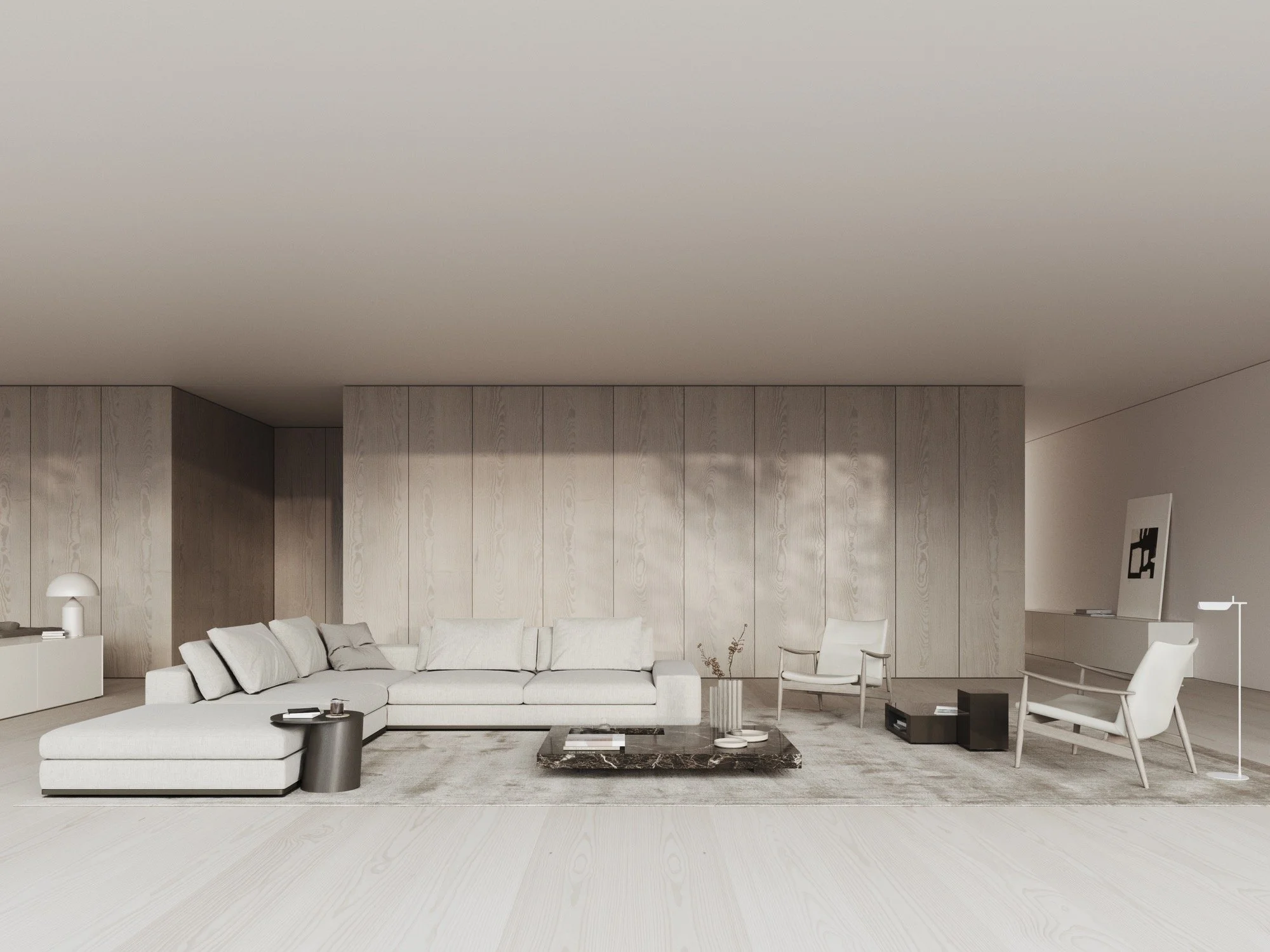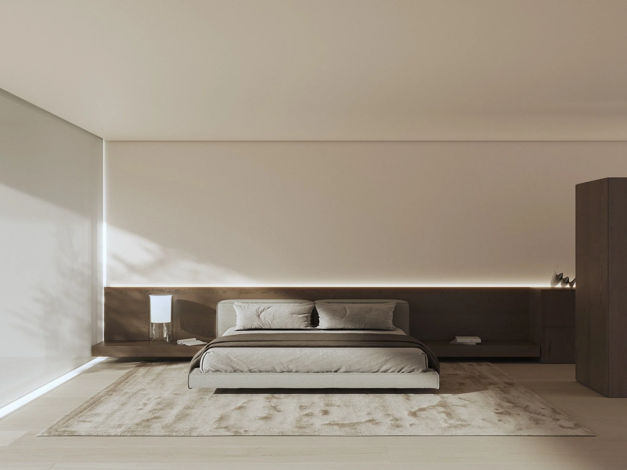 En contraste con su exterior, el interior se constituye por espacios conectados que contemplan un programa particular, donde cada uno de los ambientes revela un paisaje único del jardín. De esta manera, en esta propiedad se experimenta una atmósfera inmersa en una poética de sombras que transforman el interior.